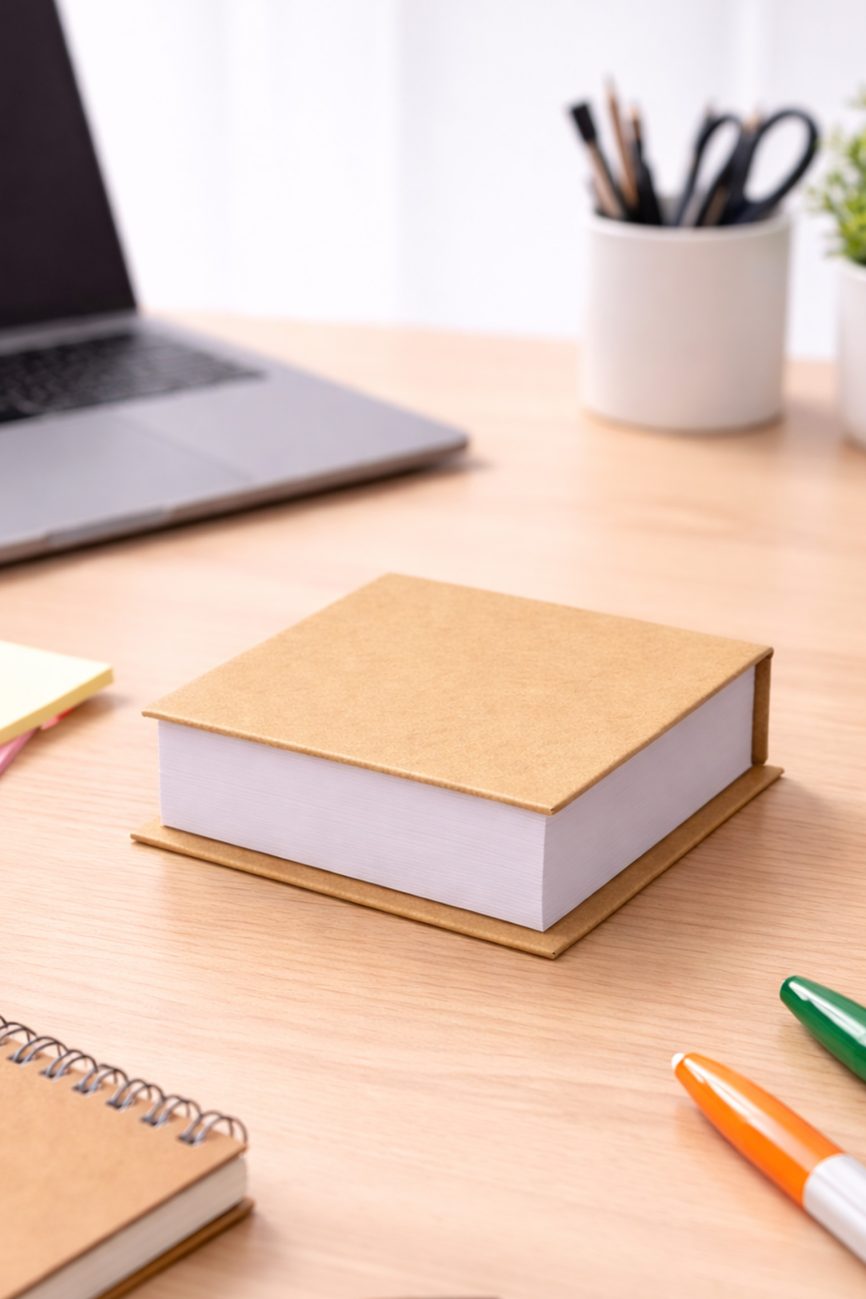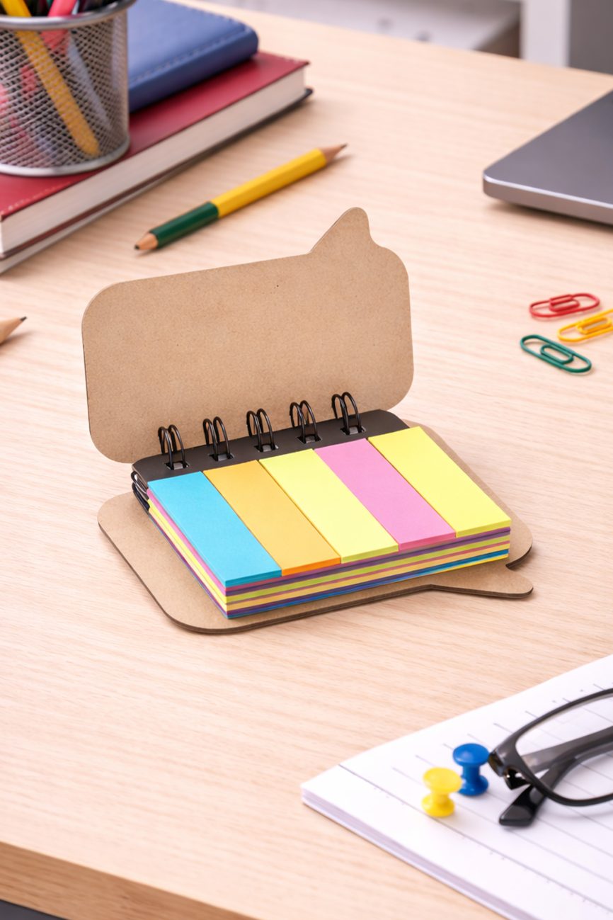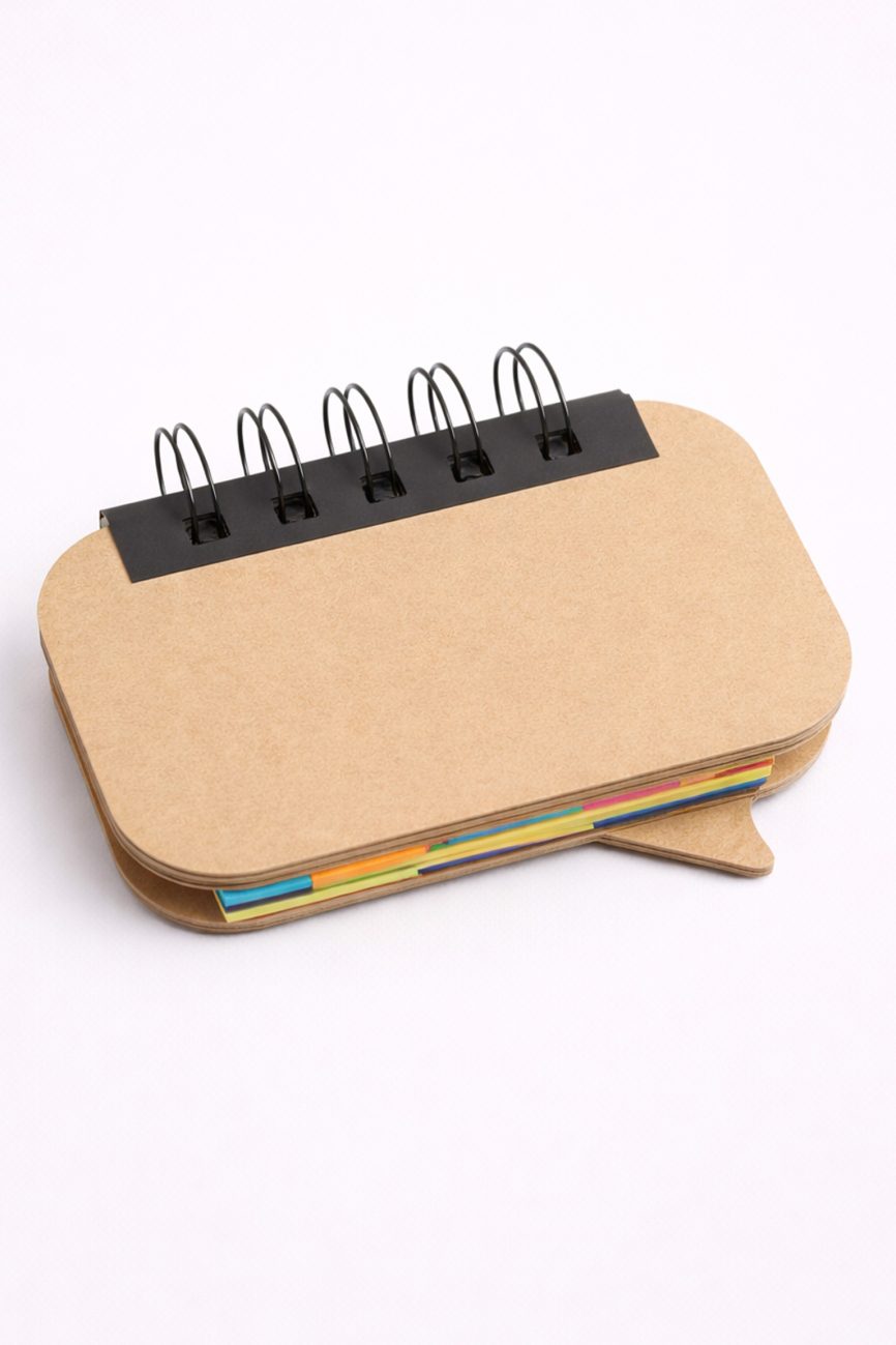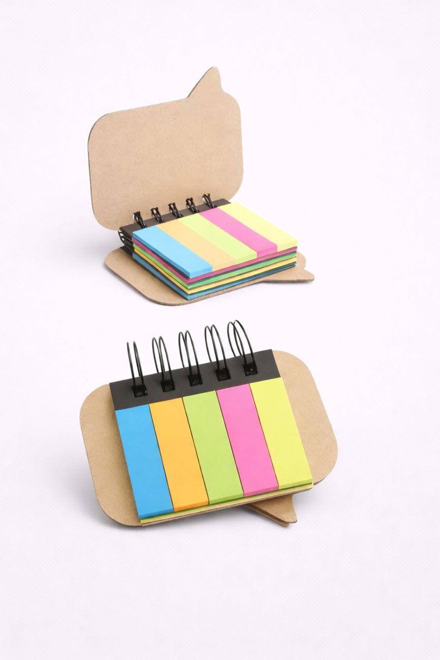 - Descripción: Libreta ecológica que contiene 5 post it medianos de diferentes colores, 1 lapicero ecológico y 70 hojas blancas.